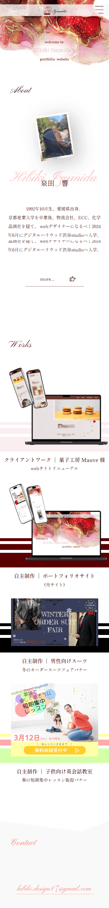 - 今までに作成した制作物を魅力的に紹介するため。 また、私自身の趣味嗜好や人柄をお伝えするため。