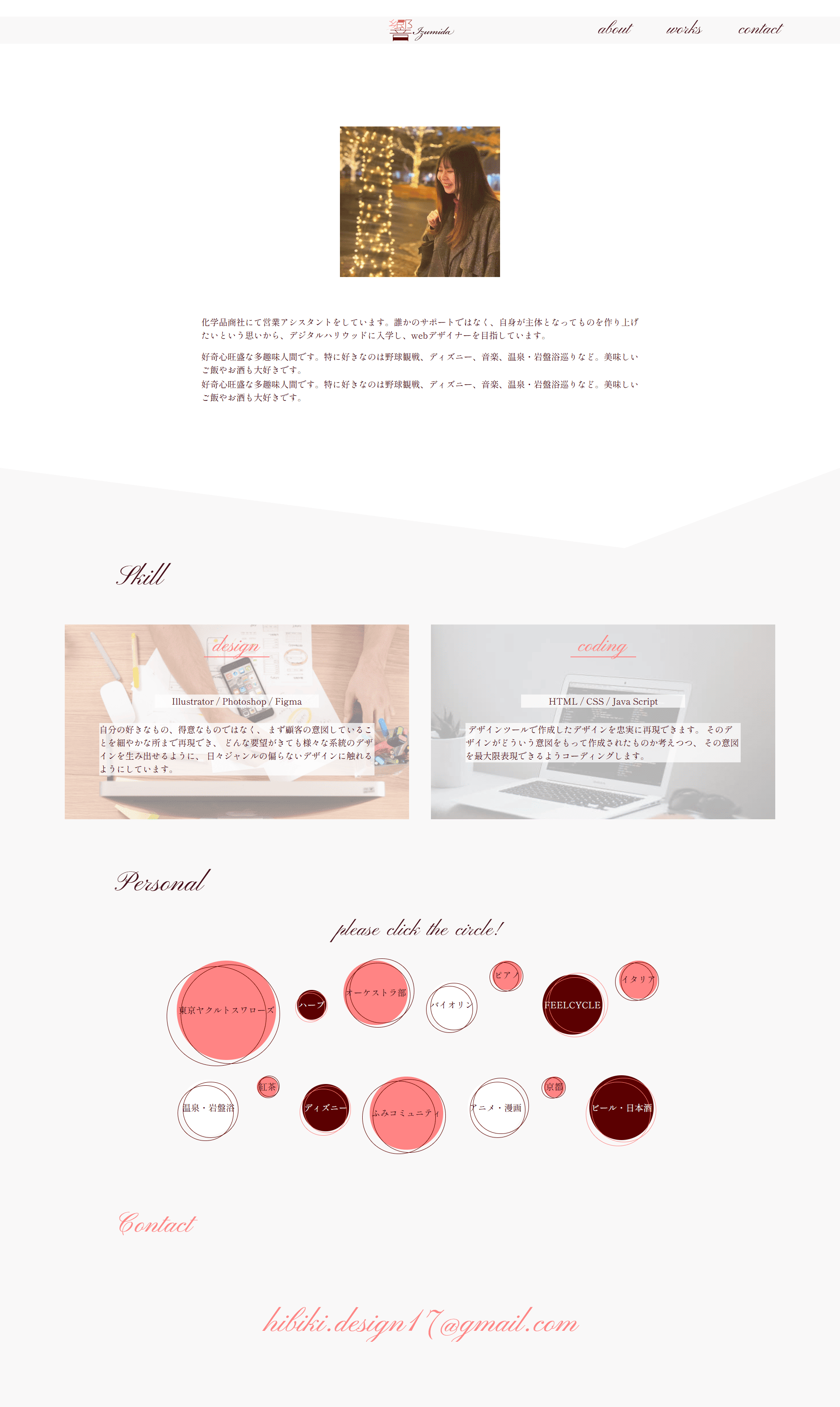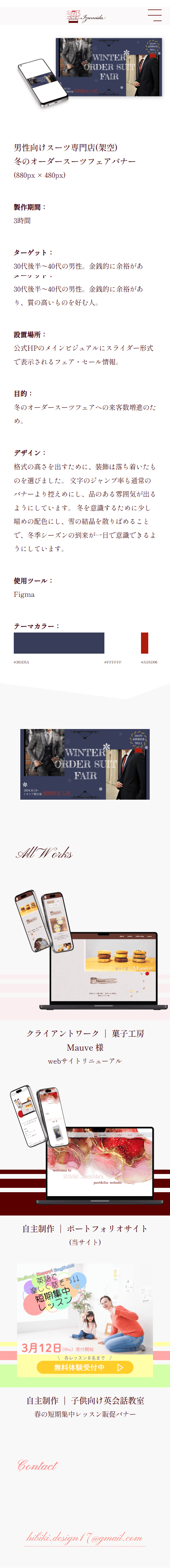 - 今までに作成した制作物を魅力的に紹介するため。 また、私自身の趣味嗜好や人柄をお伝えするため。